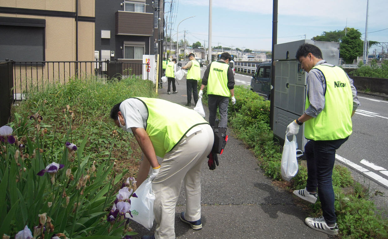 Sendai Nikon Corporation carried out cleanup activities along the road from the nearest station to the office and in surrounding areas in July and November 2024.